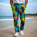 Ananas-Urlaub, Hawaii-Herren-Resort, 3D-bedruckte Anzughose, flache Vorderseite, gerades Bein, Polyester-Hose mit mittlerer Taille, Outdoor-Urlaub, Urlaub, Alltagskleidung, S bis 3XL