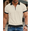 Herren Poloshirts Viertel-Reißverschluss-Poloshirt Alltagskleidung Date Viertelreißverschluss Kurzarm Mode Basic Farbblock Patchwork Reißverschluss Sommer Normale Passform Schwarz Weiß Königliches