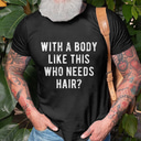 Humorvolles Grafik-T-Shirt für Männer "Mit einem Körper wie diesem wer braucht Haare?" Lustiger kahler Witz Lebensstil Tee |