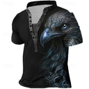 Herren Grafik Tiermotiv Adler Henley Hemd Vintage-Shirt Kurzarm 3D-Druck Mode Designer Basic Outdoor Täglich Sommer Blau Braun Grün Grau Stehkragen Henley T-Shirt |