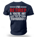 Herren lustiges Renten-T-Shirt 'Ich bin im Ruhestand und du nicht viel Spaß bei der Arbeit morgen' Grafik kurzärmliges Oberteil