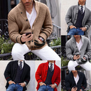 Herren Kurzer Pullover Strickjacke Cardigan-Mantel Gerippt Stricken Mit Taschen Farbblock Farbblock ohne Kragen Casual Modisch Casual Bekleidung Herbst Rote Marineblau S M L |