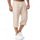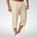 Herren Caprihose Leinenshorts Sommershorts Strandshorts Tasche Elastischer Bund Kordelzug Einfach Weich Atmungsaktiv Wadenlang Sport im Freien Lässig Schwarz Blau |