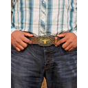 Western-Gürtel aus Kunstleder für Herren mit eingraviertem Blumenmuster und Bullenschädel-Schnalle – Cowboy-Gürtel im Vintage-Stil für Rodeo und Freizeit |