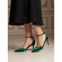 Smaragdgrüne Satin-Pumps mit Fesselriemchen für Damen – elegante Stilettos mit spitzer Spitze für Partys, Hochzeiten und besondere Anlässe |