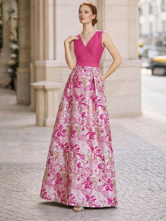 Occasion:Semi Formal,Kentucky Derby,Wedding,Formal,Style:Elegant,Silhouette:A-Line,Hemline / Train:Floor Length,Neckline:V Neck,Fabric:Jacquard,Satin,Closure:Zipper UP,Sleeve Length:Sleeveless,Embellishment:Pleats,Tips:Colors may vary slightly due to different monitor settings,Professional dry cleaner only,Features:Pocket,