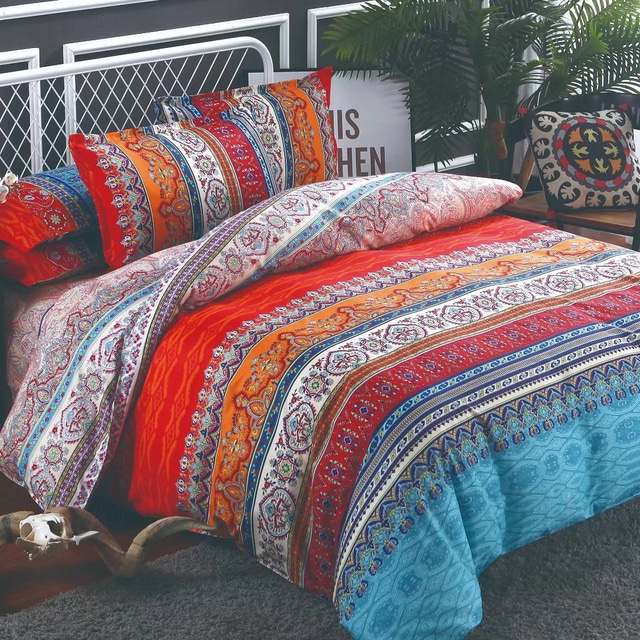 Boho Flower Duvet Cover Full Size Bohemian Lines Bedding Set Aztec Line Bed Sets Geomtric Quilt Cover Soft Lightweight Comforter Cover with 2 Pillowcases for Summer Spring