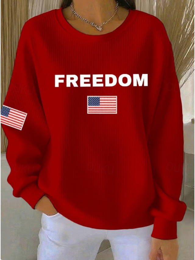 Independence Day Patriotic Women's Textured Pullover Sweatshirt Pullover Graphic Casual Long Sleeve Crew Neck Round Neck Regular Tops Casual Home Street Blue Black White Red Spring Fall