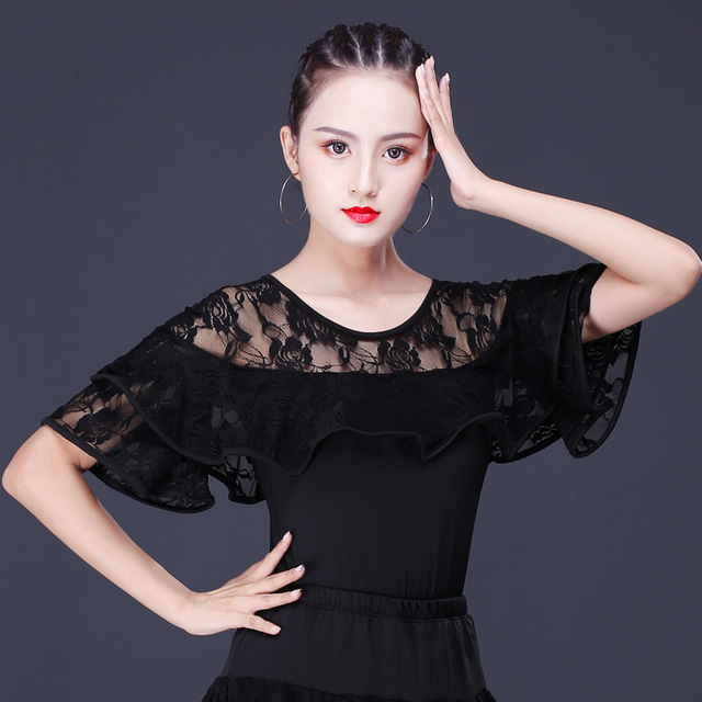 Gender:Women's,Style:Tops,Occasion:Performance,Training,Category:Latin Dance,Fabric:Lace,Polyester,Milk Fiber,Sleeve Length:Short Sleeve,Embellishment:Lace,Age Group:Adults,Tips:Top Only,What's in the box:Top,