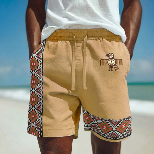 Men's Aztec Ethnic Thunderbird Shorts Casual Shorts Cotton Shorts Mid Waist Vintage Retro Vacation Dailywear Holiday Side Pockets Elastic Drawstring Waist Designer Clothing Apparel