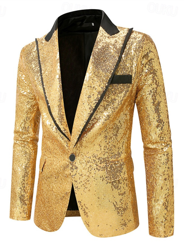 Gender:Men's,Outerwear Type:Blazer,Occasion:Business,Wedding Party,Cocktail Party,Season:Fall,Spring,Function:Comfortable,Fabric:Polyester,Placket:Single Breasted,Style:Casual,Fashion,Pattern:Plain,Design:Buttons,Pocket,Sequin,Neckline:Peaked Lapel,Sleeve Length:Long Sleeve,Fit Type:Regular Fit,Look After Me:Wet and Dry Cleaning,Washable,
