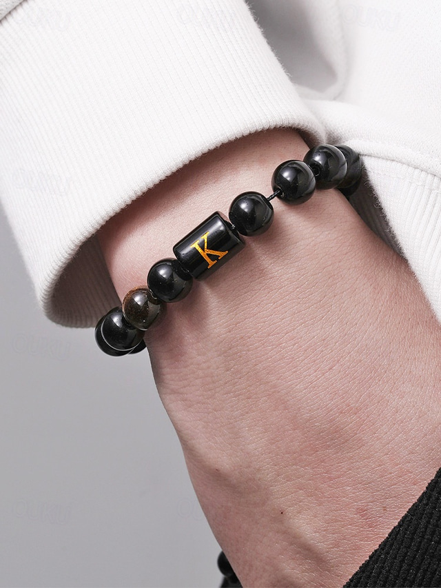 Men's Adjustable Natural Stone Bracelet with Alphabet Letter Design, Customizable with 26 Letters, Perfect for Gifting, Casual and Special Occasions