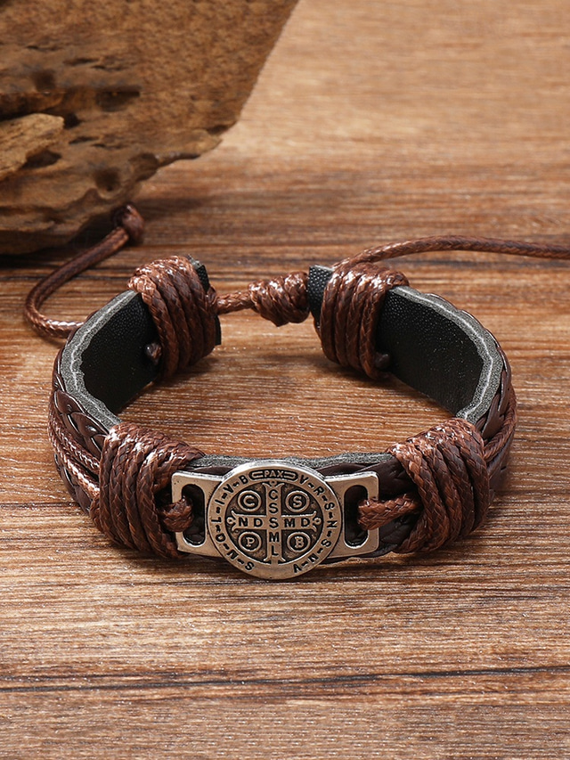Men's Viking Style Leather Rope Bracelets with Compass Design, Adjustable Fit, and Norse Boho Aesthetic for Casual and Outdoor Wear