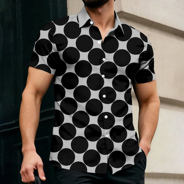 Men's Geometric Round Dots Shirt Casual Shirt Button Up Shirt Short Sleeve Fashion Casual Daily Vacation Summer Spring Turndown 3D Print Collared Shirts Blue White Green Gray
