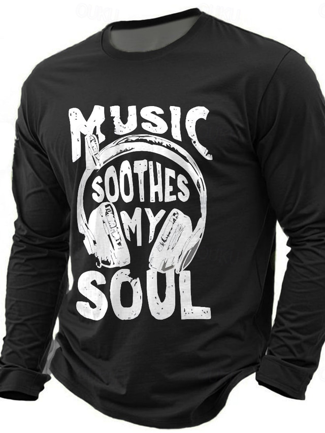 Men's Music T Shirt Long Sleeve T shirt 3D Print Crew Neck Shirt Daily Casual Daily Travel Party Blue Black Red Summer Spring Fall Clothing Apparel S M L XL XXL XXXL
