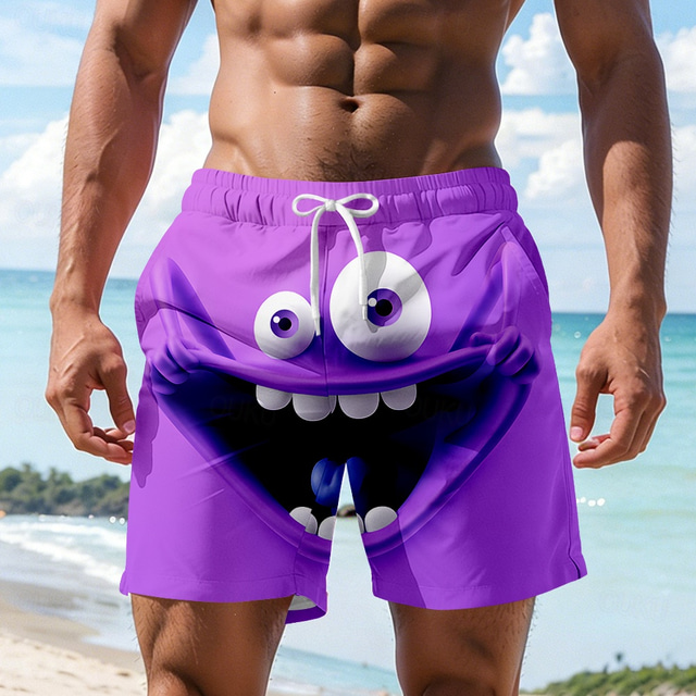Men's Optical Illusion 3D Cartoon Smile Face Swim Trunks Swim Shorts Board Shorts Mid Waist Hawaiian Funny Beach Vacation Wear Side Pockets Mesh Lining Elastic Drawstring Waist Designer Clothing
