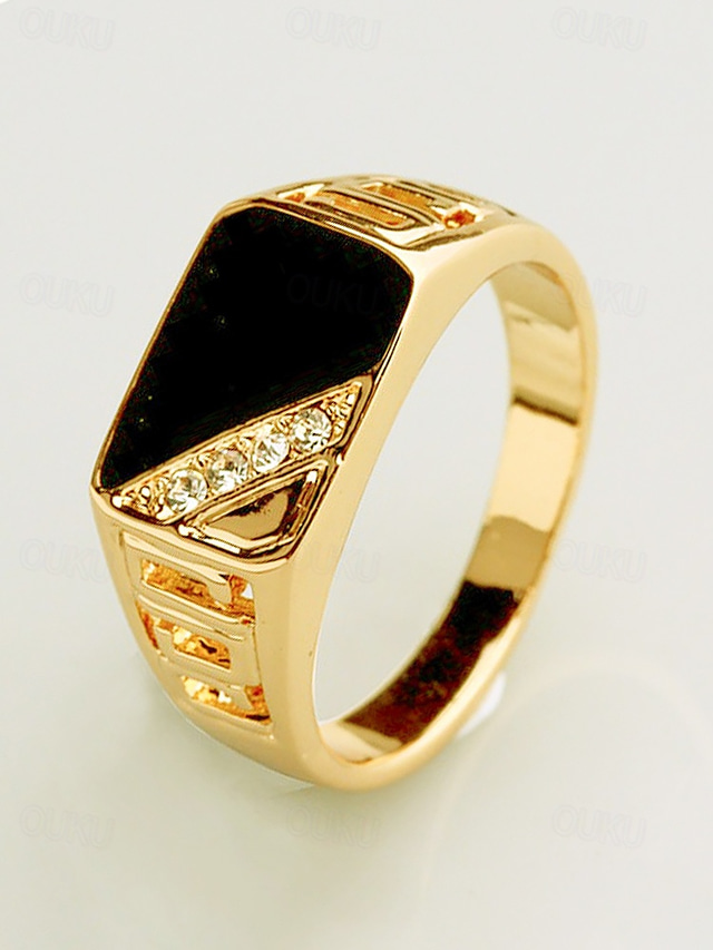 Men's Alloy Ring with Black Onyx and Zircon Accents, Vintage Geometric Statement Jewelry for Parties, Weddings & Daily Wear
