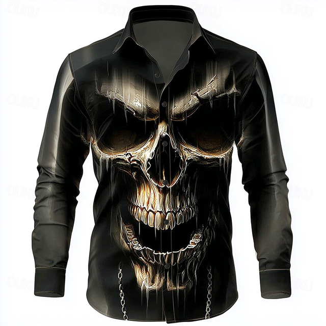 Men's Skull Death Shirt Button Up Shirt Long Sleeve Dark Punk Gothic Style Outdoor Holiday Summer Spring Turndown 3D Print Collared Shirts Black 1 Black