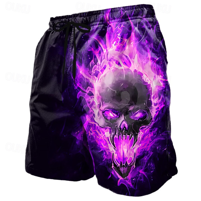 Men's Skull Flame Costumes Swim Trunks Swim Shorts Board Shorts Mid Waist Dark Punk Gothic Style Holiday Streetwear Side Pockets Mesh Lining Elastic Drawstring Waist Designer Clothing