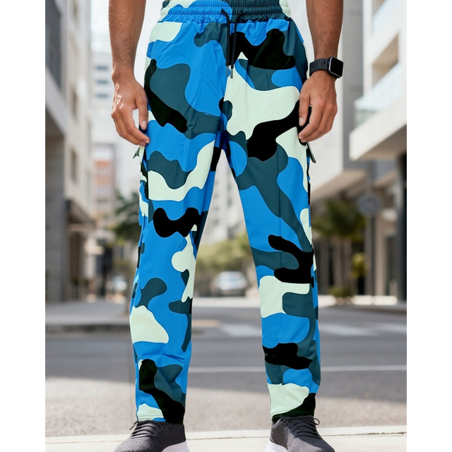 Men's Cargo Pants Trousers Camo Pants Drawstring Pocket Elastic Waist Camouflage Comfort Sports Outdoor Daily Fashion Casual Blue Army Green Micro-elastic