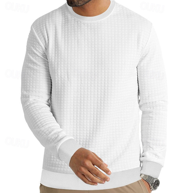 Gender:Men's,Style:Basic,Casual,Streetwear,Occasion:Sportswear,Going out,Daily,Sports & Outdoor,Holiday,Sports Clothing Sub Category:Waffle Sweatshirt,Sweatshirt,Tops Type:Pullover Sweatshirt,Basic Sweatshirts,Waffle Sweatshirts,Neckline:Crew Neck,Fabric:Polyester,Waffle Fabric,Design:Knit-texture,Ribbed,Textured,Sleeve Length:Long Sleeve,Elasticity:Micro-elastic,Look After Me:Wet and Dry Cleaning,Washable,Pattern:Plain,Season:Spring & Fall,