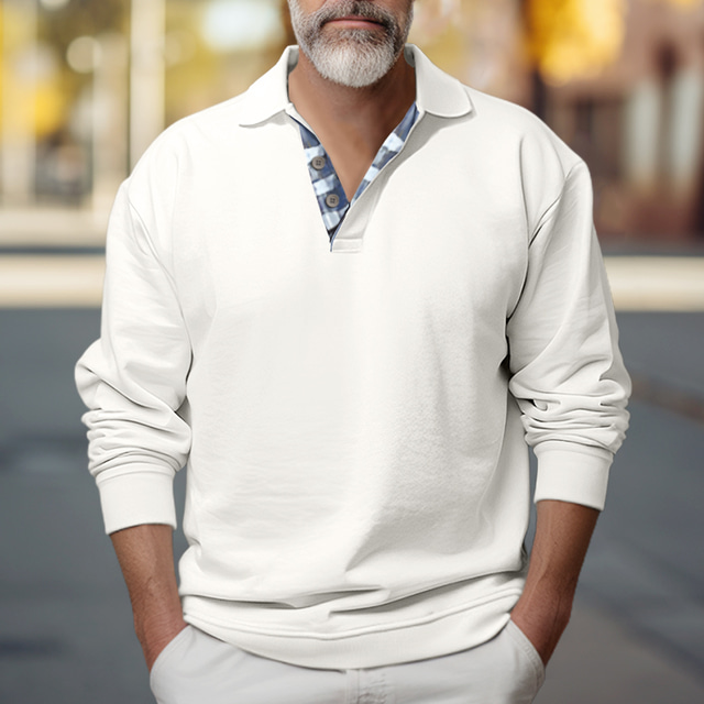 Gender:Men's,Style:Basic,Casual,Streetwear,Occasion:Daily,Holiday,Sports & Outdoor,Sports Clothing Sub Category:Sweatshirt,Tops Type:Pullover Sweatshirt,Neckline:Polo Collar,Fabric:Polyester,Sleeve Length:Long Sleeve,Elasticity:Micro-elastic,Look After Me:Wet and Dry Cleaning,Washable,Pattern:Plain,Season:Spring & Fall,