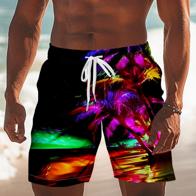 Men's Coconut Tree Tropical Plants Swim Trunks Swim Shorts Board Shorts Mid Waist Hawaiian Vacation Drawstring Mesh Lining Elastic Waist Designer Clothing Apparel