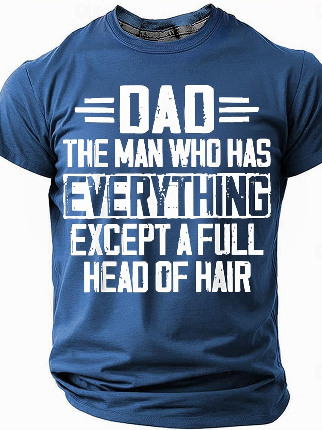 Mens Funny Dad T-Shirt - "The Man Who Has Everything Except A Full Head Of Hair" Graphic Short Sleeve Tee, Family Gift
