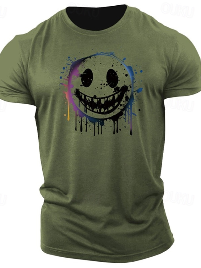 Fabric:100% Cotton,Tops Type:Tee Top,T Shirt,Gender:Men's,Design:Print,Occasion:Street,Vacation,Style:Casual,Classic,Category:T-shirt,Fit Type:Regular Fit,Neckline:Crew Neck,Sleeve Length:Short Sleeve,Elasticity:Micro-elastic,Look After Me:Wet and Dry Cleaning,Washable,Machine wash,Pattern:Grimace,Season:Spring,Summer,Age Group:Adults,