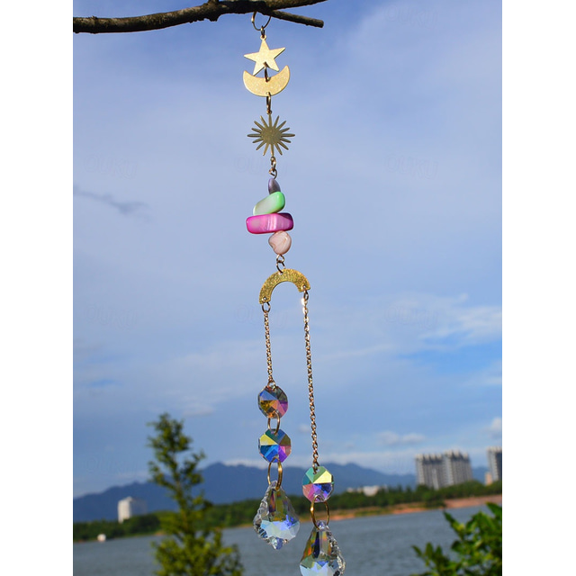 Dream Catcher Handmade Gift Natural Amethyst Star Moon Accessories Shiny Wind Chimes Ornament Wall Hanging Decor Art K9 Crystal Creative Home Pendant