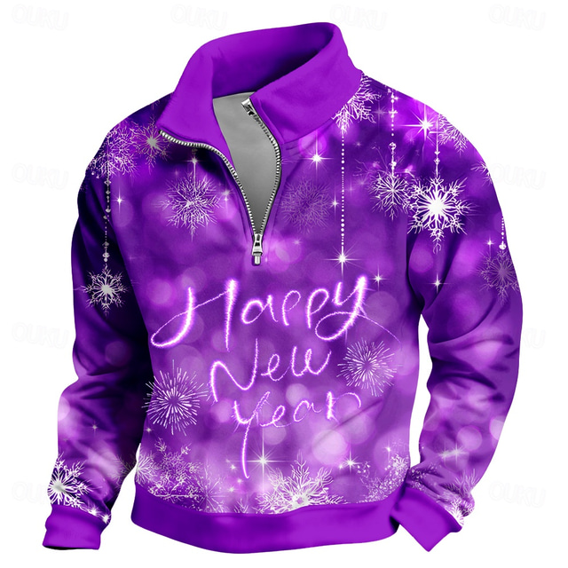 New Year Men's Happy New Year Sweatshirt Cool Daily Stylish Stand Collar Outdoor Home Gift Blue Red Purple Gold Zipper Fall Winter Designer S M L XL XXL XXXL