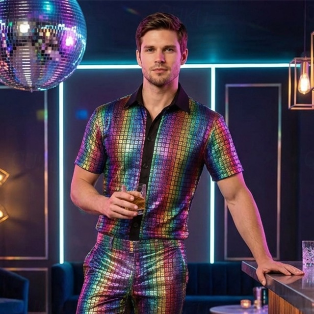 Retro Vintage 1970s Disco Blouse / Shirt Fancy Dress Men's Carnival Costume Halloween Carnival Masquerade Performance Party / Evening Stage Shirt Spring & Summer