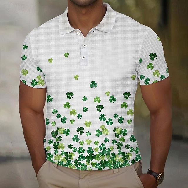 St. Patrick Men's Saint Patrick Day Waffle Polo Shirts Polo Polo Shirts Short Sleeve Polo Shirts Turndown Casual Vacation St.Patrick's Day Street Festival 3D Print Summer Red Purple Green