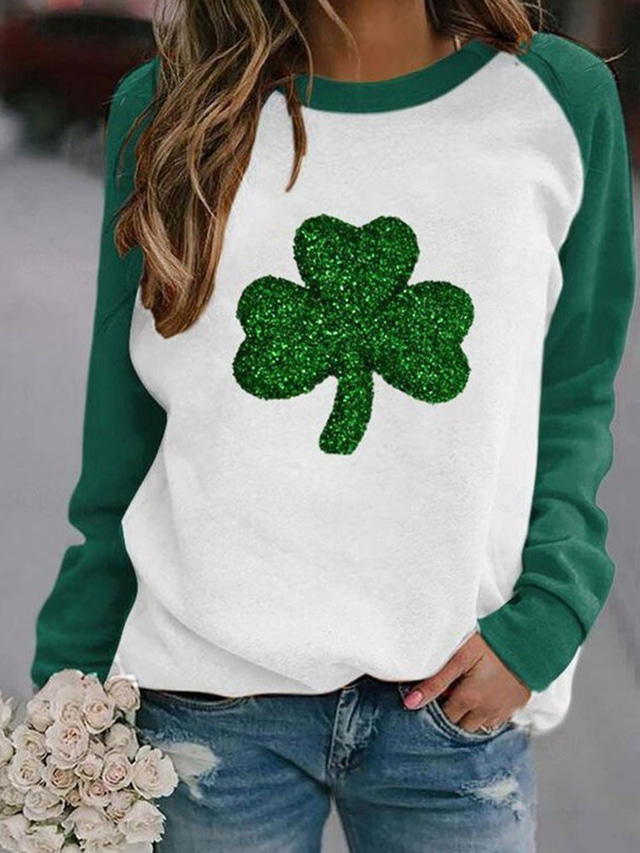 St. Patrick's Day Women's Shamrock Active Sportswear Long Sleeve Round Neck Regular Tops Casual Sports Print Grass Green Olive Green Light Green Dark Green Green Fall & Winter