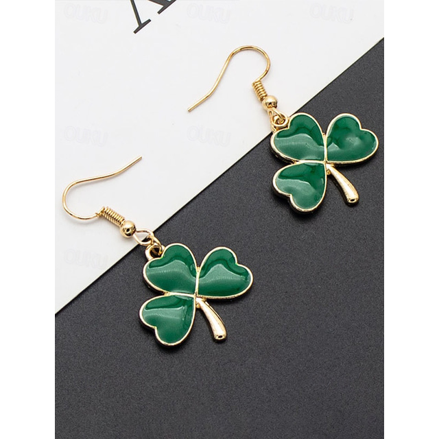 Women's St. Patrick's Day Drop Earrings, Green Shamrock & Leprechaun Hat Design, Alloy Dangle Earrings, Festive Irish Holiday Party Jewelry for Women
