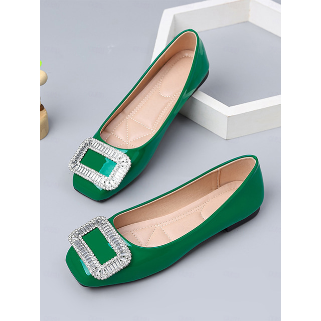 Women's Emerald Green Crystal Buckle Flats – Elegant Bridesmaid Shoes for Outdoor Garden Weddings
