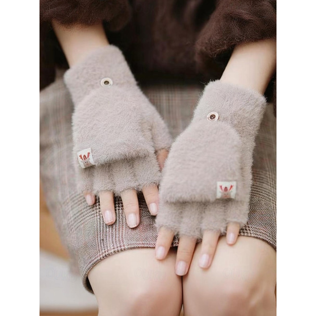Women's Plush Fleece Mittens - Soft and Warm Fingerless Gloves for Winter, Christmas and Holiday Activities