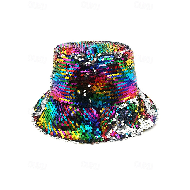 Women's Multi-Color Reversible Sequin Bucket Mardi Gras Hat - Shiny Disco Costume Accessory for Carnival, Rave & Masquerade