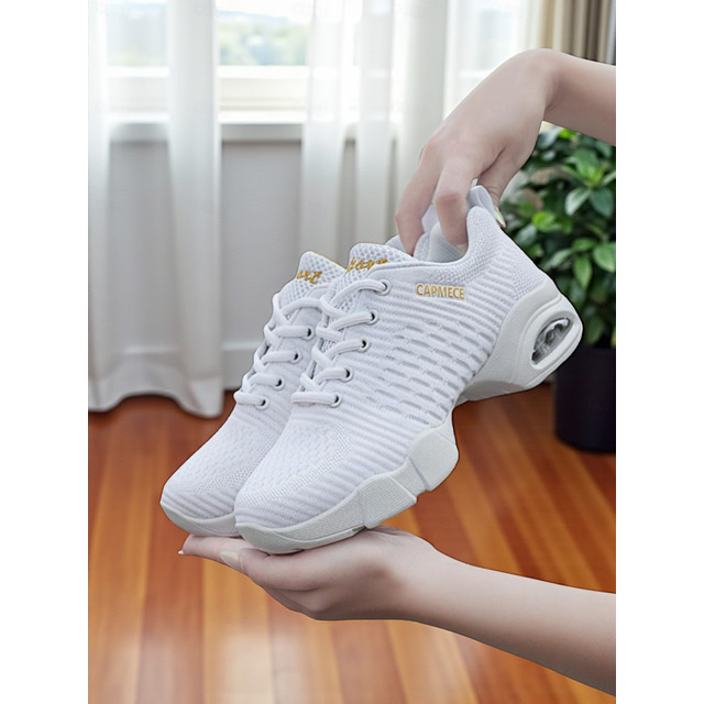 Women's White Jazz Dance Sneakers - Breathable Lace-Up Shoes for Practice, Performance & Fitness Dance Classes