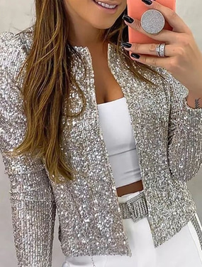 Chaquetas Abrigos Bolero Envolventes para Mujer Brillantes y Relucientes Manga Larga Lentejuelas Envolturas de Invitados de Boda con Brillo para Boda en Todas las Estaciones vestido para impresionar