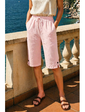 Mujer Algodón y lino Pantalones Capri Chinos Pantalón corto Vacaciones Básico Casual Longitud de la rodilla Cintura Media Plano Bolsillo Diseño de cordón elástico Confortable Comodidad Al Aire Libre
