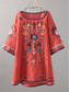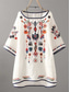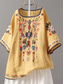 Mujer Blusa Lino de algodón sintético Bordado Floral Bohemia Básico Casual Media Manga Cuello Barco Tops regulares Diario Blanco Amarillo Rojo Verano