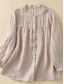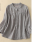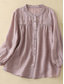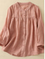 Mujer Lino de algodón sintético Bordado Botones Floral Vintage Casual Manga Larga Cuello Alto Tops regulares Diario Rojo Morado Verde Trébol Albaricoque Verano