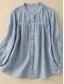 Mujer Camisa Lino de algodón sintético Manga Larga Cuello Camisero Azul Piscina Blanco Verde Trébol Primavera & Otoño