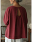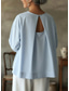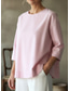 Mujer Camisa Blusa Lino de algodón sintético Color sólido Básico Casual Media Manga Cuello Barco Tops regulares Diario Rosa Verde Trébol Caqui Verano