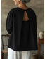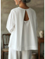 Mujer Blusa Lino de algodón sintético Bolsillo Color sólido Elegante Casual Manga 3/4 Cuello Barco Escote Barco Tops regulares Diario Festivos Negro Blanco Azul Marino Verde Trébol Verano Otoño