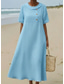 Mujer vestido largo vestido largo Lino de algodón sintético Vestido de cambio Vestido informal Vestido de verano Maxi Básico Calle Cita Holgado Manga Corta Cuello Barco Negro Rosa Azul cielo Morado
