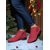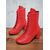 Botines rojos de ante sintético para mujer: botines de tacón bajo con lazo lateral para looks de invierno, fiestas navideñas y compras informales.