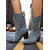 Botas vaqueras occidentales de mezclilla para mujer: botines vintage de media pantorrilla con punta puntiaguda y tacón de bloque bordado, estilo vaquera estadounidense clásico para festivales de música country y fiestas de rodeo.