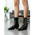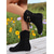 Botines negros de mujer con puños de piel sintética y tacón de cuña: un estilo chic invernal, perfectos para el frío, salidas informales y eventos navideños.
